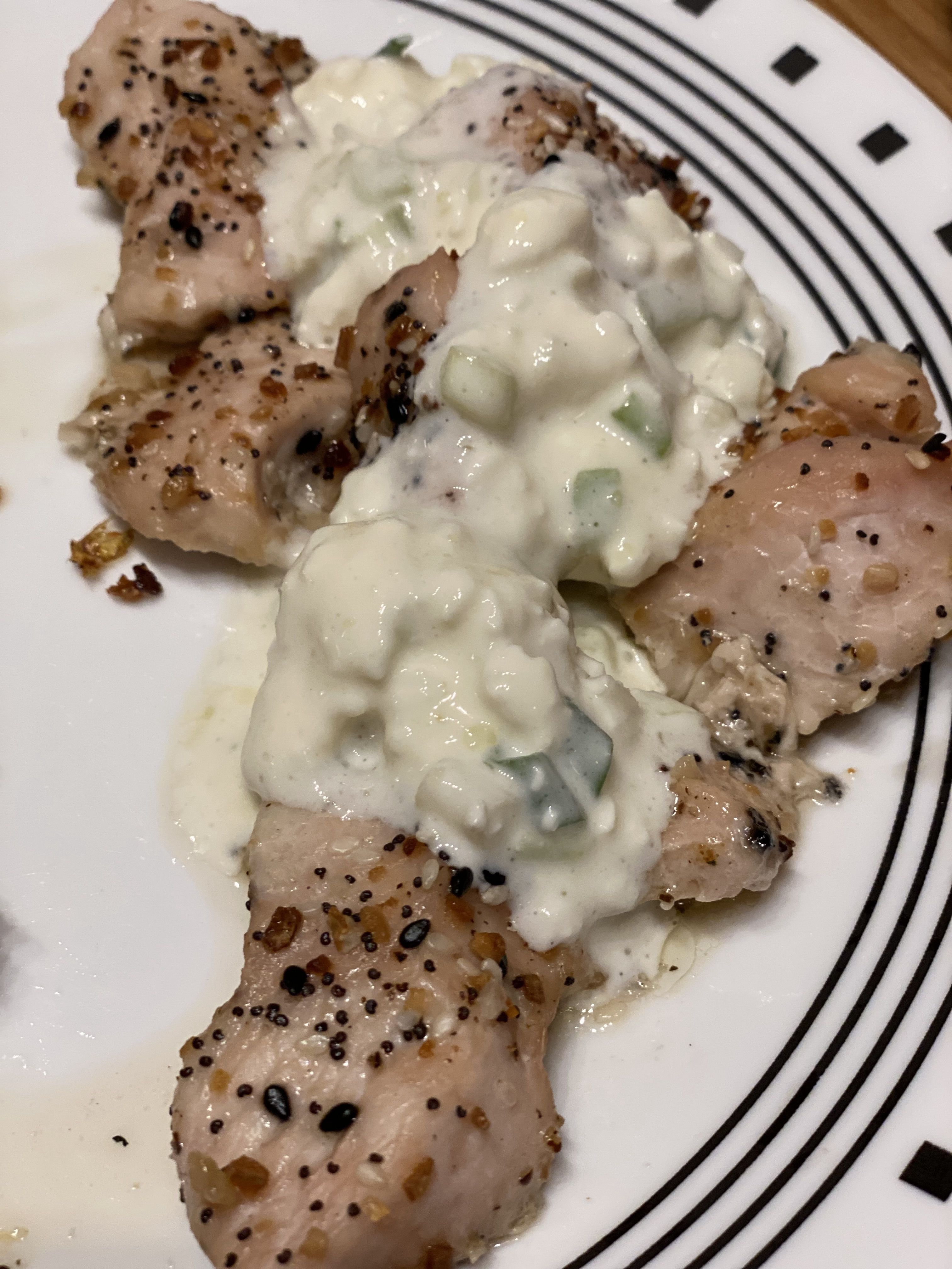 Everything Bagel Chicken with Scallion Cream Cheese Sauce